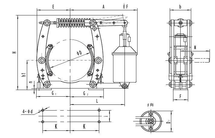 ▲ 采用YT1系列電力液壓推動器推動器;